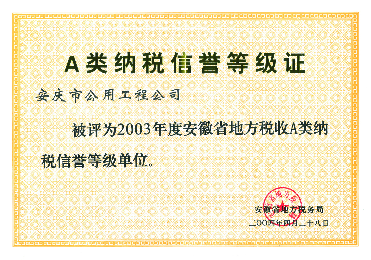 A類納稅信譽(yù)等級(jí)證