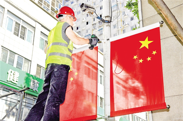 連日來(lái),嵐皋縣在縣城主要路段懸掛國(guó)旗,亮麗的“中國(guó)紅”讓過(guò)往市民提前感受到了濃濃的節(jié)日氛圍。