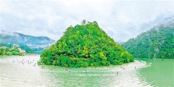 10月5日,嵐皋縣舉辦2025中國嵐韻“夢見蓬萊杯”歡樂槳板大獎賽,吸引眾多游人前來觀賽觀光。唐軍 攝