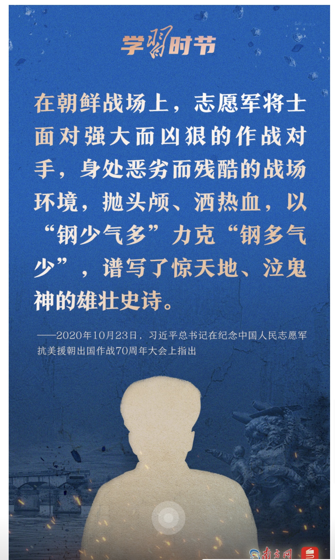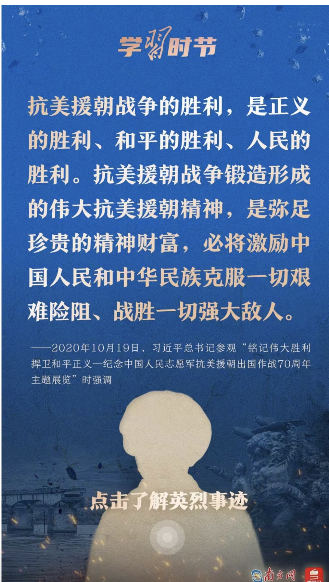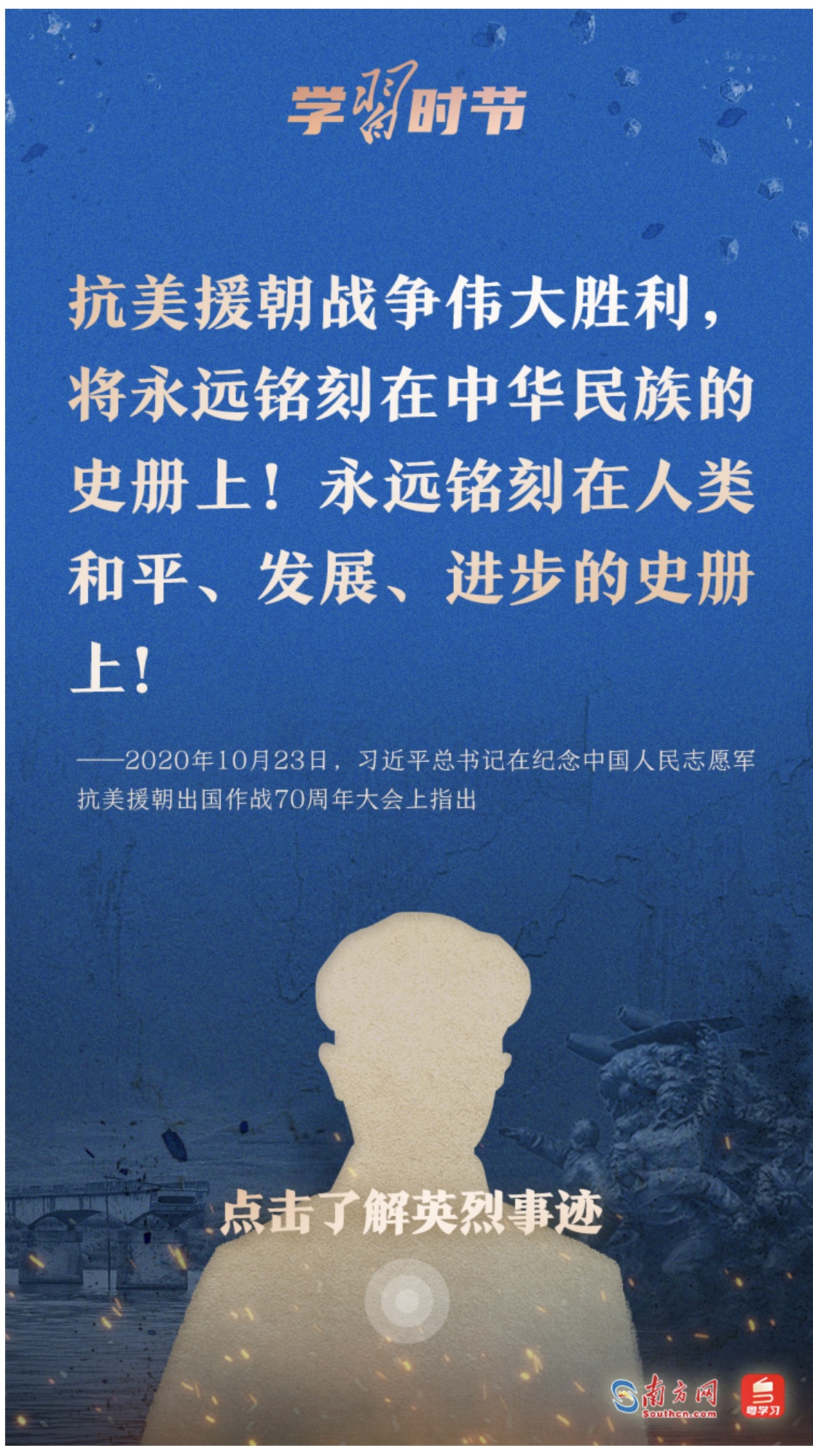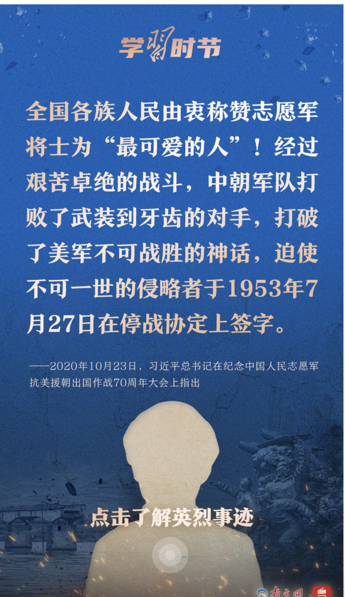 今天,讓我們一起學(xué)習(xí)習(xí)近平總書記的重要論述,永續(xù)傳承偉大抗美援朝精神。勿忘歷史,不負(fù)英魂!銘記過(guò)往,繼續(xù)前行!