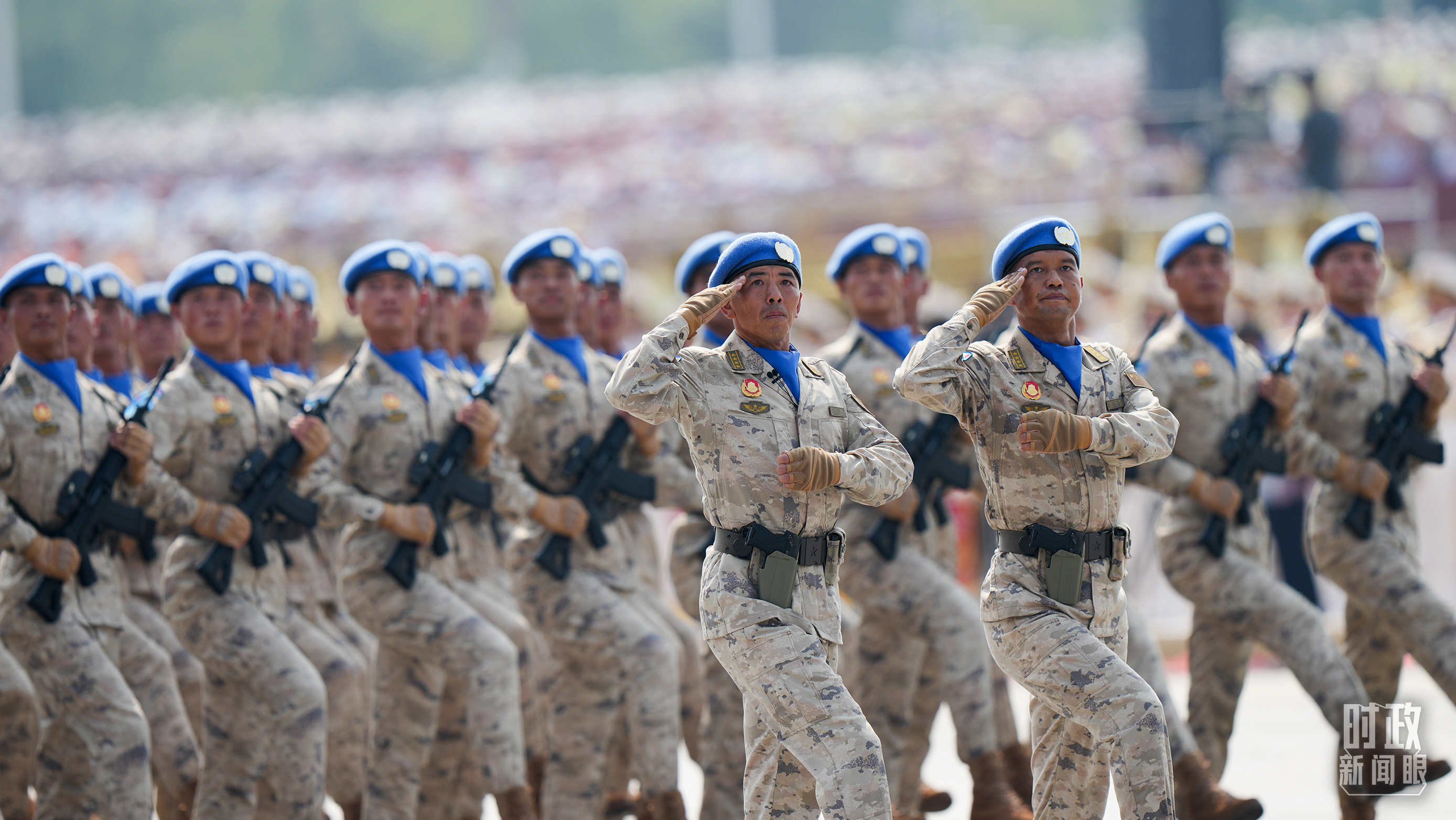 閱兵式上,維和部隊方隊闊步走來。今年是中國軍隊參加聯(lián)合國維和行動35周年,累計派遣超過5萬名維和官兵,中國是聯(lián)合國安理會常任理事國中派出維和人員最多的國家。“中國藍(lán)盔”不懼艱險、不辱使命,以熱血鍛鑄和平盾牌,用行動譜寫大國擔(dān)當(dāng),已經(jīng)成為守護(hù)世界和平安寧的關(guān)鍵穩(wěn)定力量。