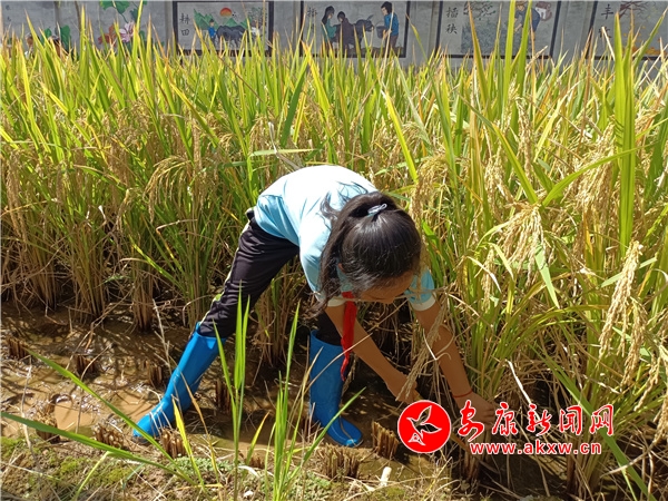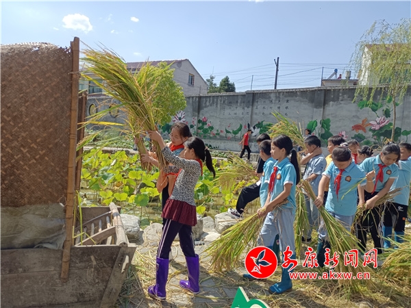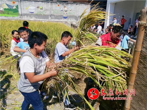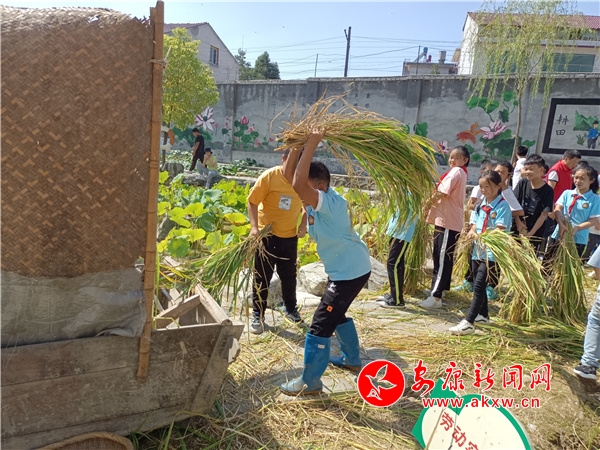 “同學(xué)們,你們看那一串串飽滿(mǎn)的稻穗掛在枝頭,長(zhǎng)得多喜人吶!現(xiàn)在我們要去收獲自己辛勤耕耘的勞動(dòng)果實(shí)了!大家要認(rèn)真學(xué)習(xí)怎樣割稻子,打稻谷,聽(tīng)從指揮,注意安全……”“老師,我要參與,我不怕累。”“我去年就學(xué)會(huì)了割稻子,今年我要學(xué)會(huì)打稻谷!”“我在電視上見(jiàn)過(guò),這個(gè)打谷子的工具歷史可悠久了。”