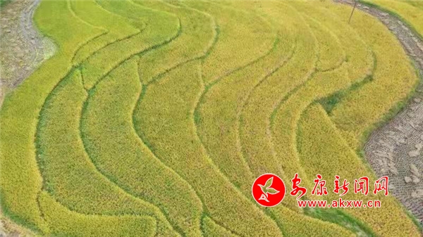 從空中俯瞰,在漫漫云海的覆蓋下,綿延數(shù)十公里的古梯田,層層環(huán)抱著山脊,從山腳盤繞到山頂,其線條如行云流水,其規(guī)模磅礴壯觀,與青山相互交融,盡顯自然和諧。走在田間的小道上,稻香撲面而來,粒粒飽滿的稻穗隨風(fēng)搖曳,村民們正搶抓晴好天氣,忙著收割、打粒、裝袋。放眼望去,金黃的稻田、翠綠的山巒和勤勞的村民勾勒出一幅優(yōu)美的豐收畫卷。