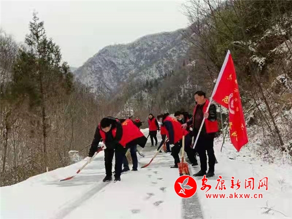 本網(wǎng)訊(通訊員 唐小明)12月25日,地處漢陰縣北部山區(qū)的鐵佛寺鎮(zhèn)迎來今冬首場降雪,境內(nèi)多條交通干線出現(xiàn)不同程度積雪,嚴(yán)重影響人民群眾安全出行和生產(chǎn)生活。為最大限度降低雨雪天氣影響,暢通群眾出行,27日一早,該鎮(zhèn)新時(shí)代文明實(shí)踐所迅即組織鎮(zhèn)村兩級志愿服務(wù)隊(duì),前往漢銅路多處積雪路段開展“情暖寒冬 義務(wù)除雪保暢通”志愿服務(wù)活動(dòng)。