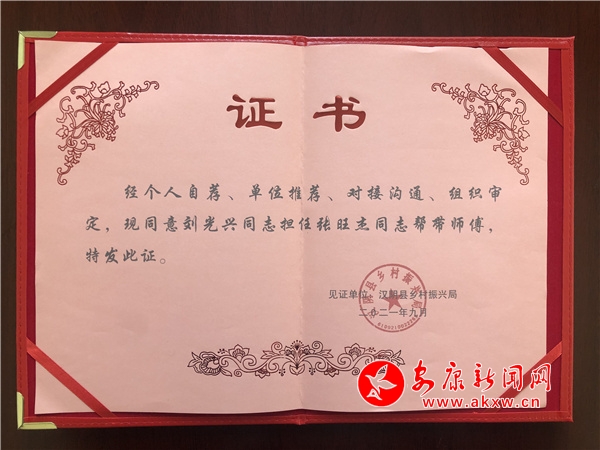 9月初,漢陰鄉(xiāng)村振興工作領(lǐng)導(dǎo)小組要求明確全縣派駐的第一書記和駐村隊(duì)員實(shí)行“師傅幫帶”,接到通知后我心里竊喜,打定主意一定要“拜”軍壩村黨總支劉光興同志為師傅。然而在我走到劉總支面前提及此事時(shí),平時(shí)和藹可親的總支瞬間變得深沉嚴(yán)肅起來,沉默了幾秒后強(qiáng)調(diào)要報(bào)請(qǐng)上級(jí)部門批準(zhǔn)才答應(yīng)。這個(gè)舉動(dòng)著實(shí)讓我犯嘀咕甚至還有點(diǎn)失望,內(nèi)心想著是不是劉總支不想帶我或者看不上我這個(gè)徒弟?按照縣上統(tǒng)一安排,很快就組織了“師傅幫帶”集中培訓(xùn),發(fā)放證書,并對(duì)師傅和徒弟分別提出考核獎(jiǎng)懲 。看似此事順理成章,我在工作中叫總支,生活中叫師傅,沒有一點(diǎn)違和感。