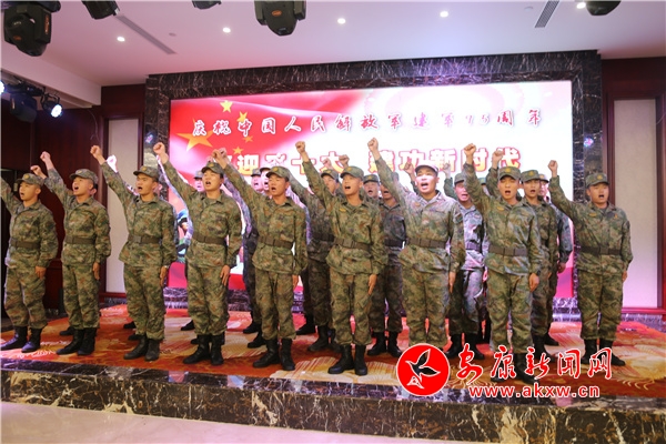 活動中并有軍人們自創(chuàng)、自導(dǎo)、自演的擒敵拳、詩朗誦等10多個精彩節(jié)目。老兵、新兵在一起激情澎湃的同唱《中國人民解放軍軍歌》,共敘軍人情懷,共話魚水深情,暢談夢想和作為,將為民服務(wù)的思想和軍人精神凝成堅不可摧的精神志向,一起傳承愛國愛民的紅色基因。