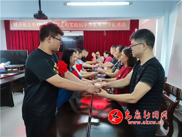8月15日,漢陰北街社區(qū)舉辦集體升學禮,引導群眾做新民風建設(shè)的踐行者,帶頭拒絕“升學宴”“謝師宴”。(通訊員 姚鑫)