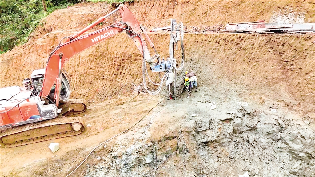 在鳳凰山隧道引線工程(進(jìn)口段)項目建設(shè)現(xiàn)場,機(jī)器轟鳴,挖掘機(jī)揮舞著鏟斗挖掘土石,運(yùn)輸車輛往來穿梭,配合默契。工人們鉚足干勁,爭分奪秒搶抓工期,現(xiàn)場一派熱火朝天的施工景象。
