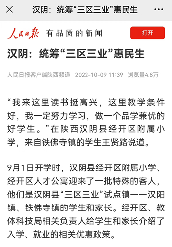 2022年7月,漢陰縣制定出臺了《統(tǒng)籌“三區(qū)三業(yè)”推進教育優(yōu)質(zhì)均衡發(fā)展試點方案》,探索推行學區(qū)園區(qū)社區(qū)聯(lián)動工作機制,全力實現(xiàn)保障學生學業(yè)、家長安心就業(yè)、家庭安居樂業(yè)(簡稱“三區(qū)三業(yè)”),保障民生需求,促進全縣教育、就業(yè)、安居高質(zhì)量發(fā)展。該試點方案明確了加強學區(qū)、園區(qū)、社區(qū)建設的9條措施。