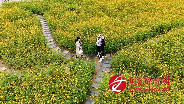 通訊員 賀珍珍 熊樂(lè)眼下,漢陰縣花月灣迎賓公園的硫華菊進(jìn)入盛花期,金燦燦的花朵在秋風(fēng)中搖曳生姿,與點(diǎn)綴其間的巨型花環(huán)草帽相映成趣,共同織就一幅溫暖而靈動(dòng)……