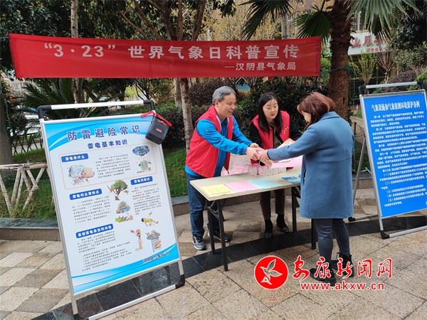 3月23日是第63個(gè)世界氣象日,漢陰縣氣象局下鎮(zhèn)村、進(jìn)社區(qū),向社會(huì)公眾發(fā)放氣象科普資料,開(kāi)展氣象法律知識(shí)講解,傳播氣象防災(zāi)減災(zāi)知識(shí),大力提升人民群眾氣象防災(zāi)……