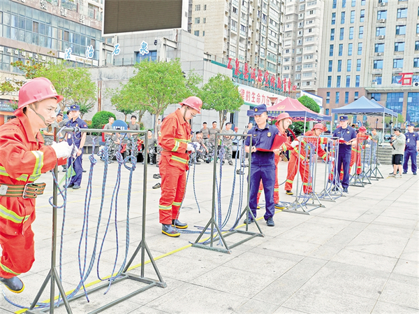 著裝完畢,隊(duì)員迅速移步至繩架前。卷結(jié)、雙股單結(jié)、雙股8字結(jié)、蝴蝶結(jié)、單椅子扣,5個基礎(chǔ)繩結(jié)在指尖翻飛中快速成型。在救援現(xiàn)場,一根繩索、一個繩結(jié),往往是連接生命的紐帶,是救援人員自身防護(hù)的“生命線”,也是保障被困人員轉(zhuǎn)移安全的核心前提。